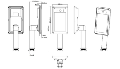 紅外燈、動態測溫顯示、測溫模塊、文字告警顯示、7英寸高清顯示屏、白光燈、AI活體識別攝像頭(曠視算法)、活體人臉抓拍、識別結果顯示日期時間顯示